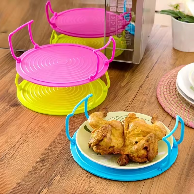 Das Mikrowellentablett ist ein faltbares, doppellagiges Gestell, mit dem Sie zwei Gerichte gleichzeitig aufwärmen können. Es kann auch als Kühlregal, Ablage oder Abdeckplatte verwendet werden – ein vielseitiges, platzsparendes Werkzeug, das jede Küche braucht.