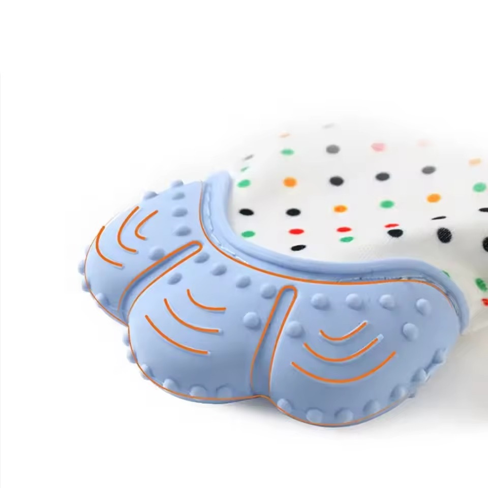 Hampaiden pureskeluun tarkoitettu lapanen on turvallinen ja hellävarainen ratkaisu vauvoille hampaiden pureskelun alkuvaiheessa. Se on suunniteltu useilla kuvioiduilla silikonipinnoilla ja hauskalla rypistyvällä äänellä, ja se pitää vauvat viihdytettynä samalla kun se lievittää ikenien epämukavuutta – ei tarvitse pitää purukumia.