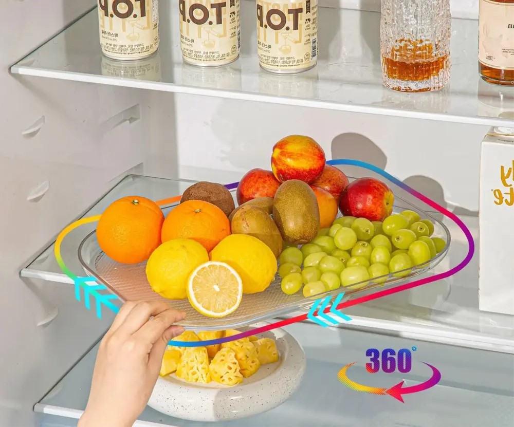 Tämän kääntöpöydän avulla pääset helposti käsiksi mihin tahansa jääkaapissa, kaapissa tai tiskillä olevaan tavaraan. Pyöräytä sitä vain, ja kaikki on aivan edessäsi – ei enää kaivamista tai tavaroiden siirtelyä!