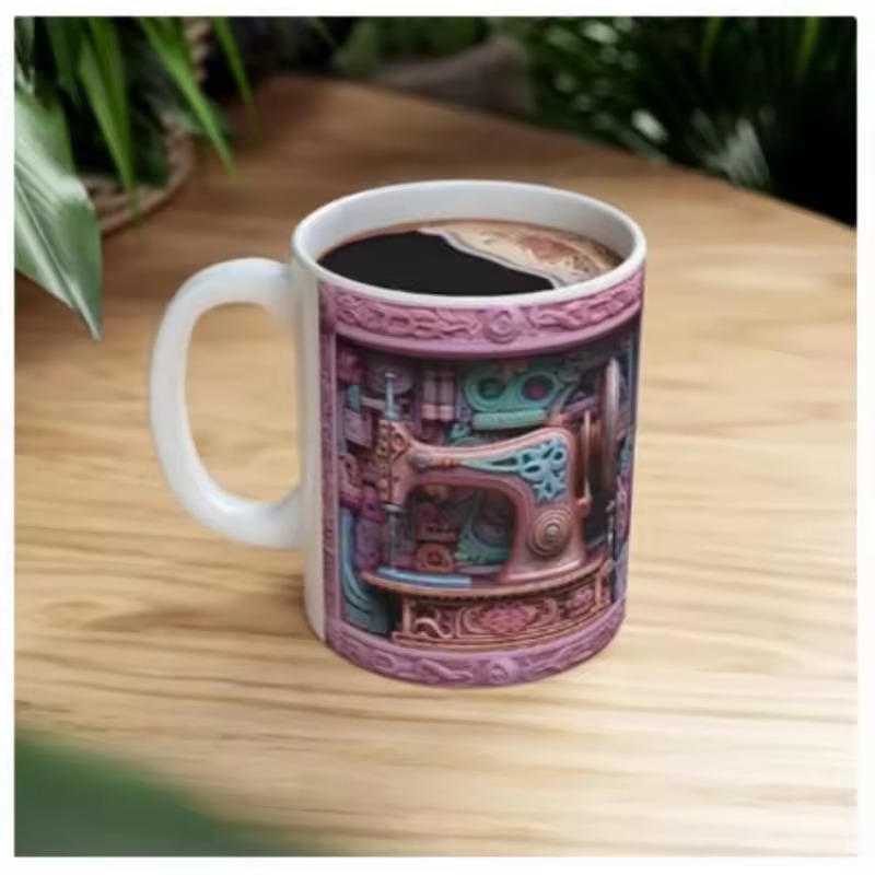 Tämä vahva keraaminen muki on tehty juuri ompelun ystäville. 3D-ompelumuotoilu tekee jokaisesta kulauksesta hauskemman!