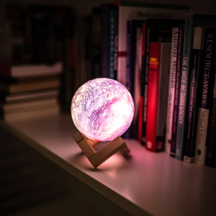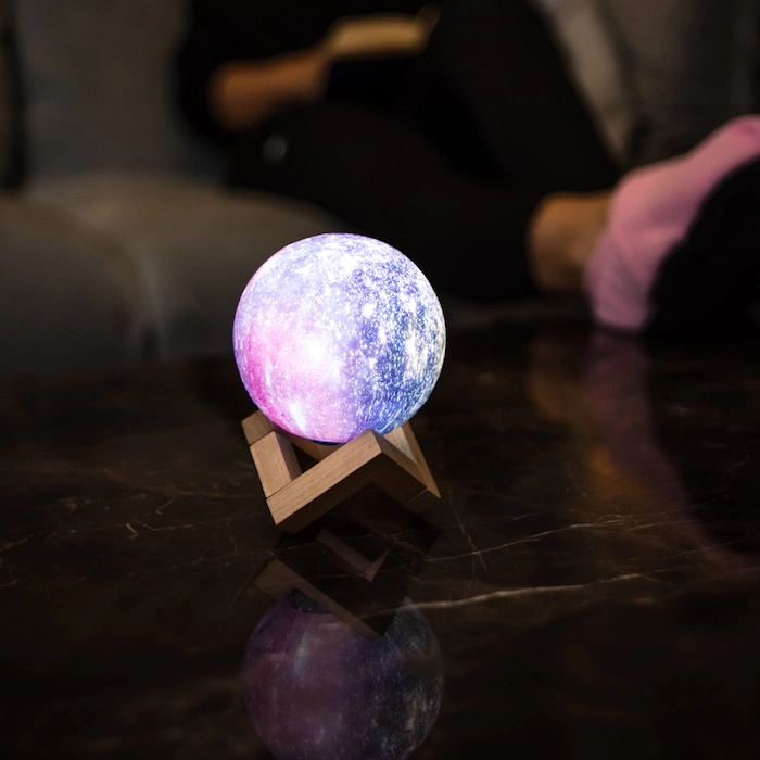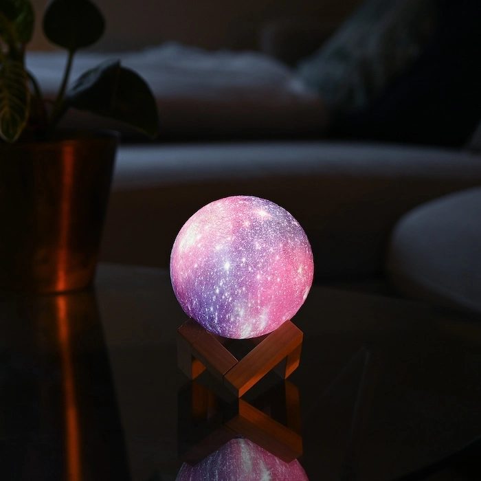 Denna fantastiska 3D-utskrivna månlampa återskapar månens realistiska yta med fascinerande galaxfärger som förvandlar vilket rum som helst till ett himmelskt underland. Med 16 färgalternativ och både pek- och fjärrkontroll kan du skapa den perfekta atmosfären för avkoppling, sömn eller bara njuta av kosmos skönhet från ditt nattduksbord.
