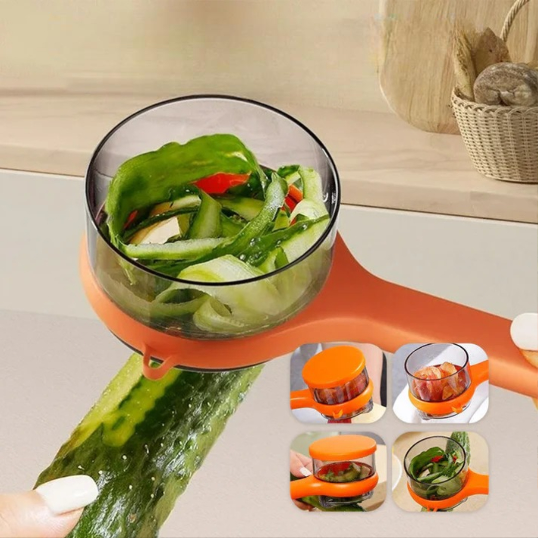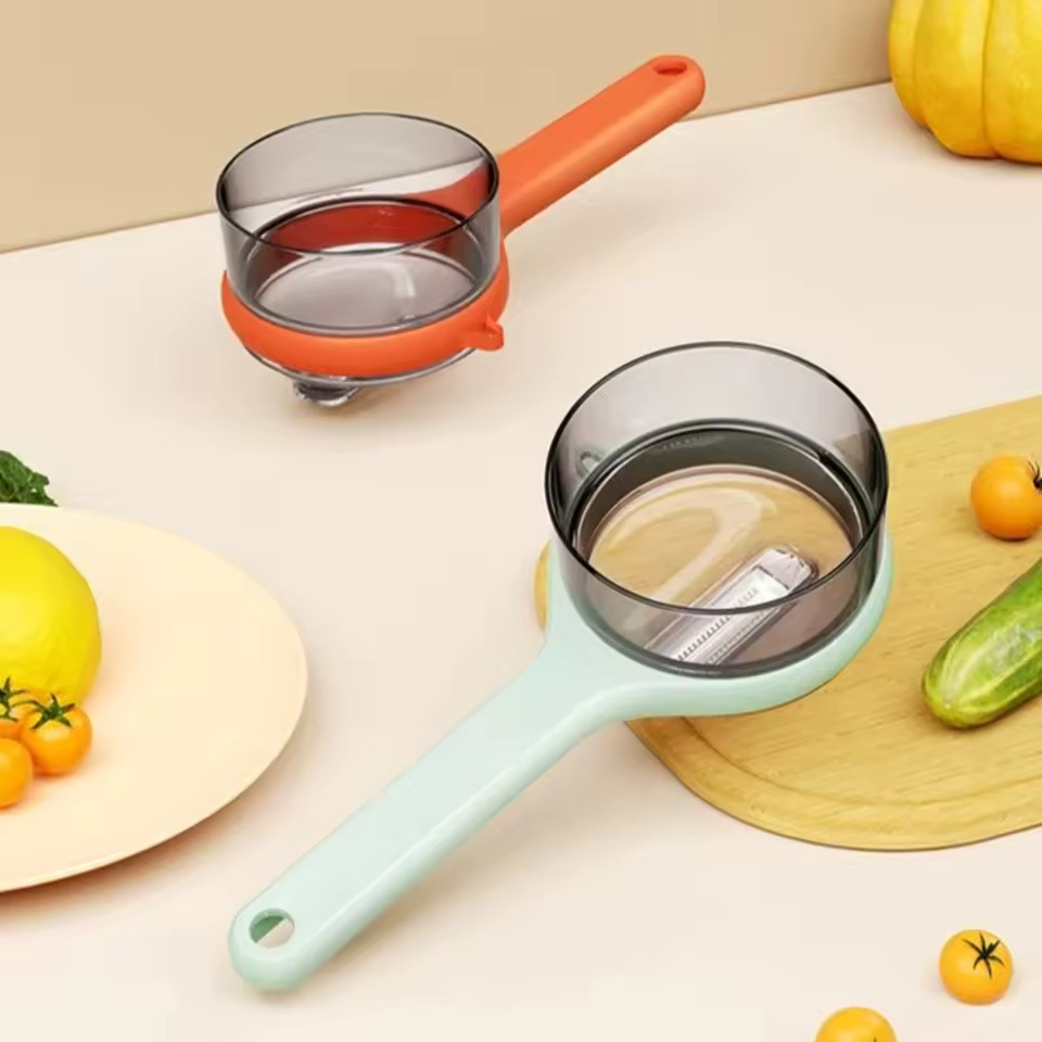 This 2-in-1 peeler comes with a built-in storage box that collects peels as you work, keeping your countertop clean. The sharp stainless steel blade peels smoothly and quickly, while the ergonomic handle gives you full control. It saves time, reduces cleanup, and makes everyday food prep easier.