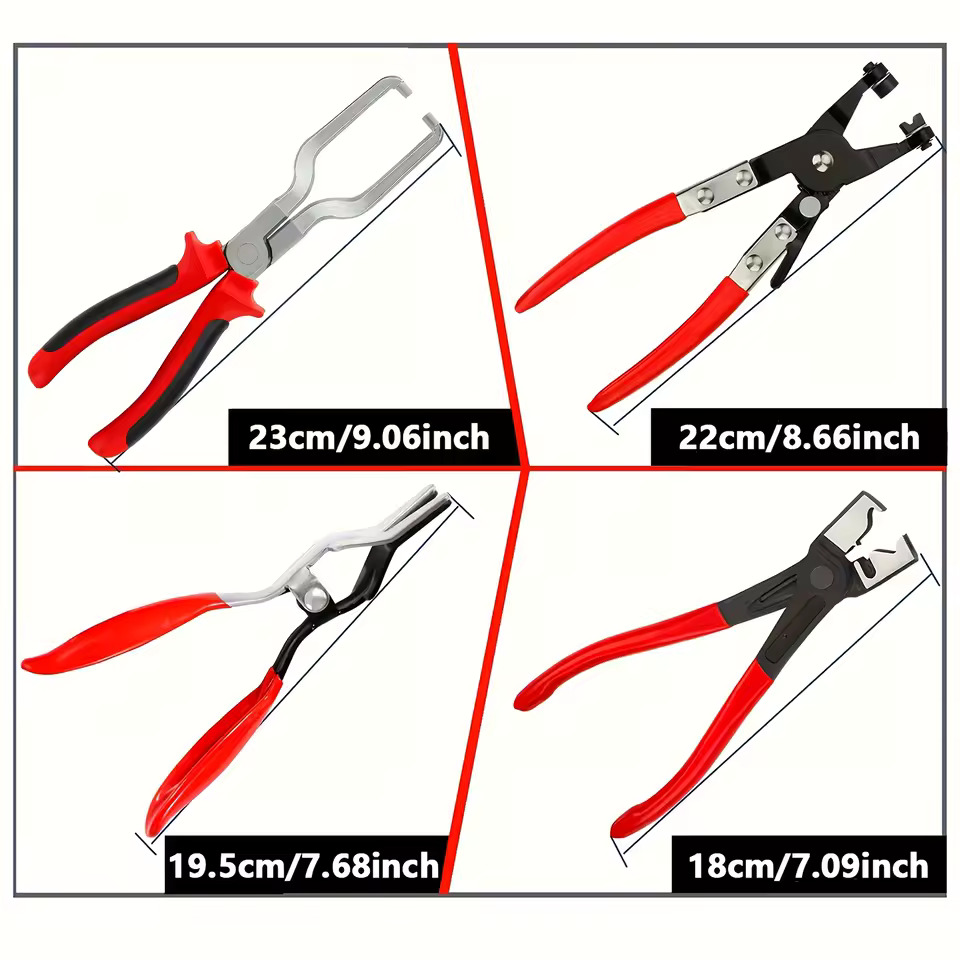 The 4-in-1 hose clamp pliers set gives you everything you need to handle fuel lines, coolant lines, water hoses, and transmission hoses with ease. Designed for mechanics and DIY car lovers, this set makes hose removal and clamp adjustments fast, clean, and frustration-free.