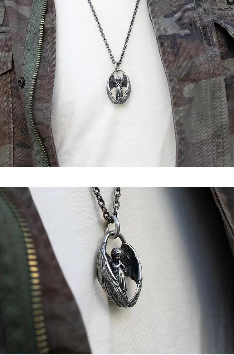 Angels represent strength, courage, and hope. They help us overcome tough experiences and emerge stronger. During challenging times, this silver angel wing necklace serves as a reminder that we are not alone and that our guardian angel is with us.