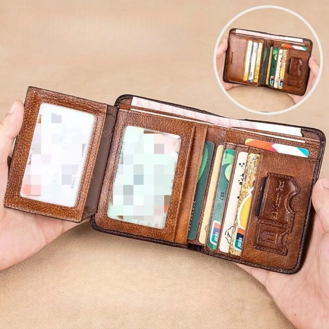 This wallet is made from high-quality cowhide leather that develops a rich, unique look over time. It offers strong RFID protection, multiple card slots, and a classic design—perfect for everyday use or as a meaningful gift for any man.