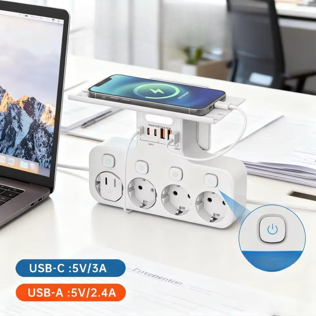 This EU plug converter socket combines multiple AC outlets with USB-A and USB-C ports, giving you a complete charging and power solution in one compact unit. It is designed for modern homes, kitchens, offices, and workspaces where many devices need power at the same time. With individual switches and strong 4000W output, you stay in full control while keeping everything safe and organized.