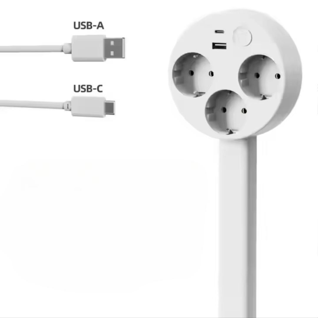 This extendable power strip expands to give you more space for charging multiple devices at once, while staying compact when not in use. The rotating 180° design lets you position it vertically, horizontally, or at any angle, making it perfect for desks, nightstands, offices, dorm rooms, and travel. With built-in USB-A, USB-C, and AC outlets, it replaces multiple chargers with one clean solution.