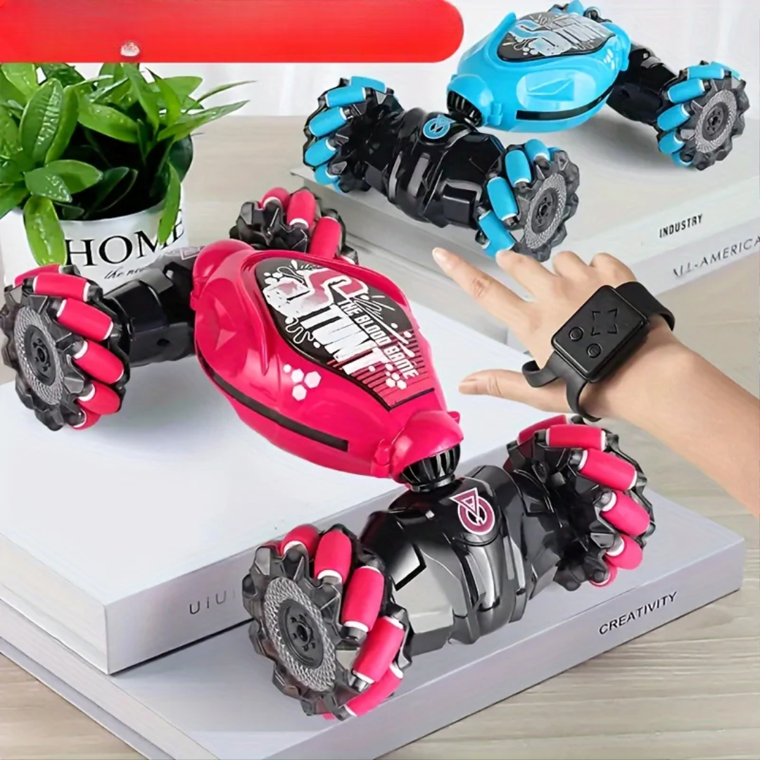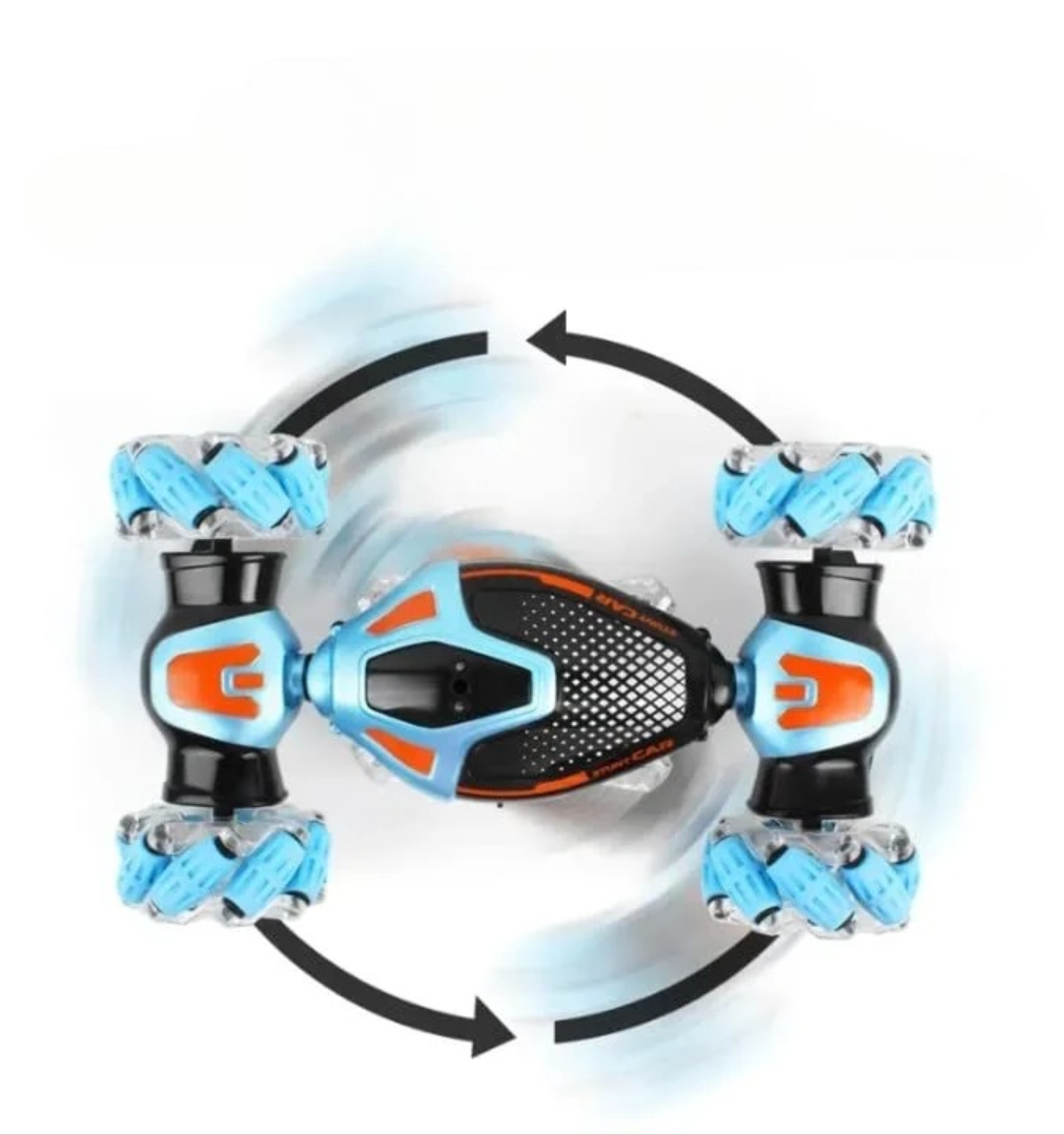This gesture control RC car lets kids drive, spin, and flip using hand movements or a classic remote. With strong stunt tires, bright LED lights, and a tough build, it delivers nonstop action indoors and outdoors. This RC car features dual control modes so kids can choose how they play. Use the remote for precise driving or switch to gesture control to steer, turn, and perform tricks with simple hand movements.