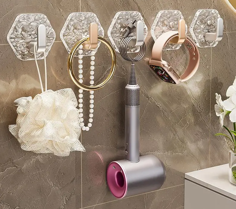 These hexagonal no-drill hooks use a strong self-adhesive system to hold everyday items safely. They install in seconds, look stylish, and work perfectly even in humid areas like bathrooms and kitchens.