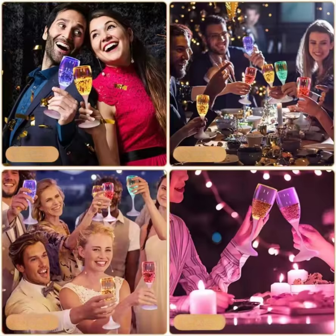 LED wine glasses that light up automatically when filled, adding colorful glow to any drink. Designed for parties and events, they feature multiple vibrant colors, durable food-grade material, and a reusable, waterproof build. Easy to use and clean, they create a fun, eye-catching atmosphere for celebrations.