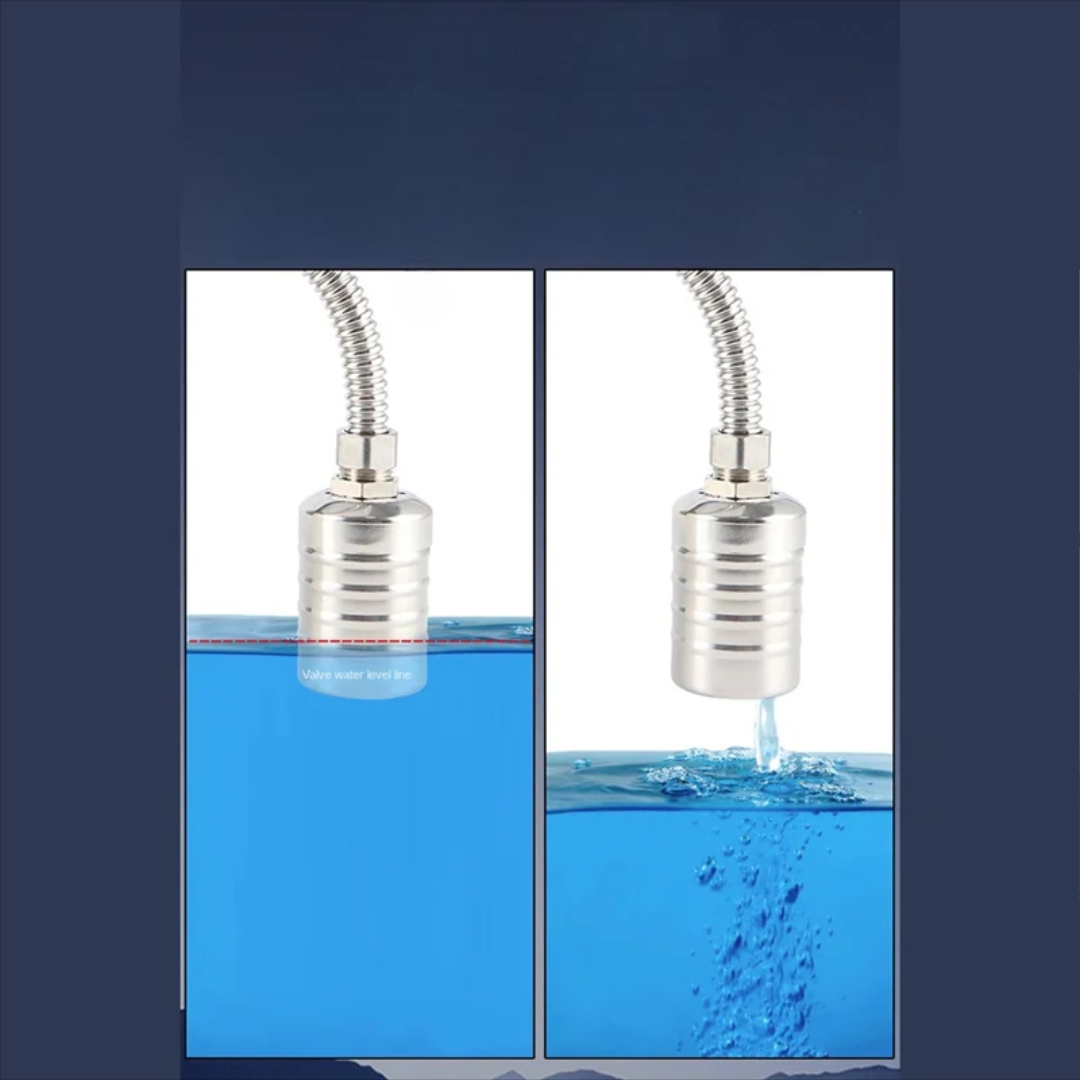 This stainless steel float valve automatically opens and closes based on the water level, keeping tanks filled at the right level without manual control. Made from food-grade 304 stainless steel, it is safe for drinking water, highly durable, and more efficient than traditional float ball valves. Its compact design delivers strong water flow while taking up very little space.